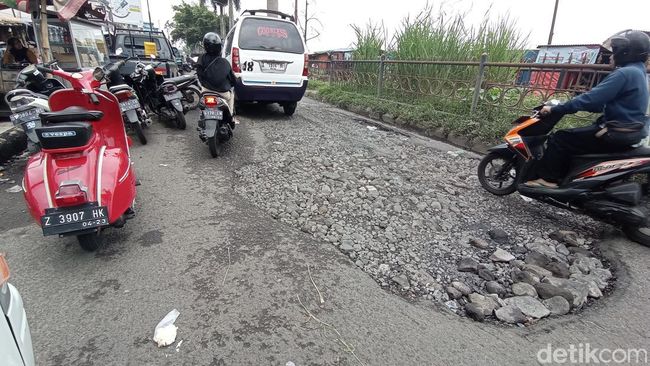 "Wah sudah lama ini jalan rusak, mungkin sudah ada 6 bulan bahkan lebih," kata Neni (40) salah seorang pedagang sayuran, Kamis (11/5) lalu.