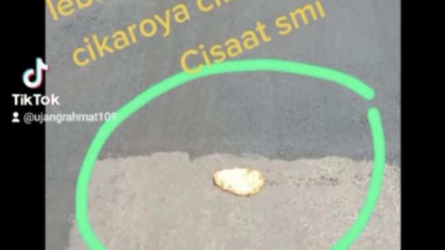 Video aksi warga itu tersebar di media sosial TikTok. Akun @ujangrahmat109 memperlihatkan kondisi jalan yang ditambal sulam dengan menggunakan aspal. Kemudian, ada potongan gambar jalan yang di atasnya disimpan bala-balal atau camilan gorengan. Tak lupa, dia juga menuliskan kalimat dalam postingannya tersebut.