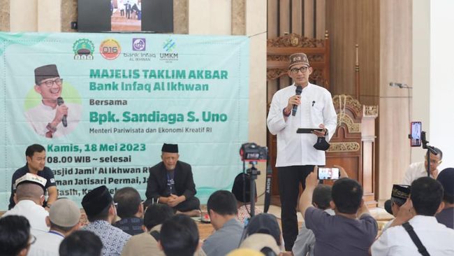 "Bank Infaq Al-Ikhwan yang menjadi salah satu Bank Infaq terbaik dan bisa mengentaskan kemiskinan, bisa bermanfaat bagi masyarakat, dan juga bisa menciptakan lapangan pekerjaan yang target kita menciptakan 4,4 juta lapangan kerja baru," ungkap Sandiaga dalam keterangan tertulis, Jumat (19/5/2023).