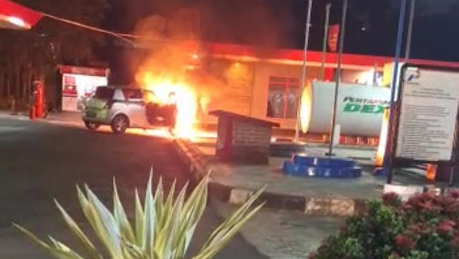 Sebuah mobil tiba-tiba terbakar saat mengantre di SPBU Jalan AH Nasution Kecamatan Mangkubumi Kota Tasikmalaya, kamis (1/6/2023) malam. Api berkobar hebat membuat sopir panik hingga pingsan.