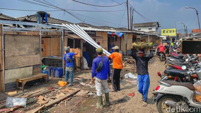 Pantauan detikJabar, para pedagang harus mengosongkan jongko di pasar yang sebelumnya ditempati. Mereka harus berpindah ke pasar sementara yang berada di Alun-alun Banjaran dan dekat Pasar Domba yang sebelumnya digunakan untuk tempat pembuangan sampah (TPS).