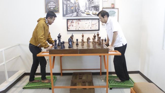 "Manfaat Chess Gym ada tiga, pertama main catur, jalan kaki di tempat ada treadmill, kemudian pijat refleksi karena sudah disiapkan bandulan karet hitam. Sehingga kalau diinjak telapak kaki itu memengaruhi saraf-saraf di kaki, menyehatkan tubuh," ujar Simon saat berbincang dengan detikJabar, Sabtu (10/6/2023).