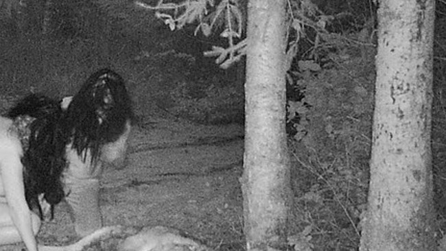 "Saya dan kakek memasang kamera untuk melihat apakah ada hewan lain dan sempat ada kucing bobcat," katanya. Setelah diperiksa lagi, ada rekaman dua orang wanita setengah telanjang mendekati bangkai itu dan terlihat memakannya.