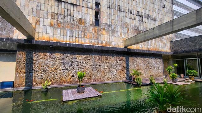 "Relief pertama berada di bagian depan lantai dua GISBH, letaknya di kolam dekoratif. Relief itu salah satu peninggalan dari awal gedung ini berdiri," kata Marketing Communication (Marcomm) GISBH Mentari kepada detikJabar, Rabu (14/6/2023).