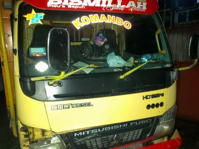 "Beberapa kendaraan sempat terjepit badan truk yang melaju sendiri saat bannya akan diganjal batu," kata dia.