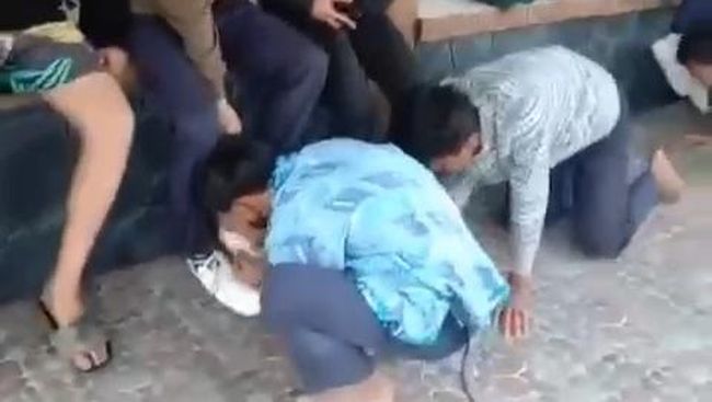 Dalam video berdurasi 38 detik itu, tampak beberapa siswa SMP disuruh oleh seseorang yang merekam video untuk mulai bersujud kepada pelajar lain yang ada di depannya.