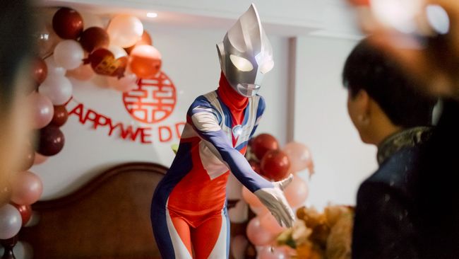 "Aku tidak pernah berpikir akan menikahi Ultraman," katanya dalam keterangan video. "Dia tahu aku suka Ultraman. Aku tidak menyangka dia membuka gaun pengantinnya dan menjadi Ultraman untukku. Aku sangat terharu," ujar pengantin pria.
