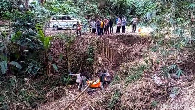 "Tadi pagi sekitar pukul 07.30 WIB kami menerima informasi dari salah satu warga yang kebetulan warga itu sedang mencari sarang semut untuk pakan burung. Posisi korban terlihat dari jurang kurang sedalam 3 meteran," jelas Aguk.