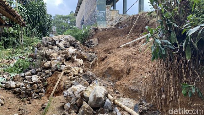 "Saluran debit air yang dari longsor atas itu kan keluar, warga posisi rumahnya di bawah, jadi air sama lumpur tanah masuk ke rumah dan kandang kambing. Nggak ada yang rusak atau korban jiwa, cuma puing-puing material longsor masuk ke rumah warga," ujarnya.