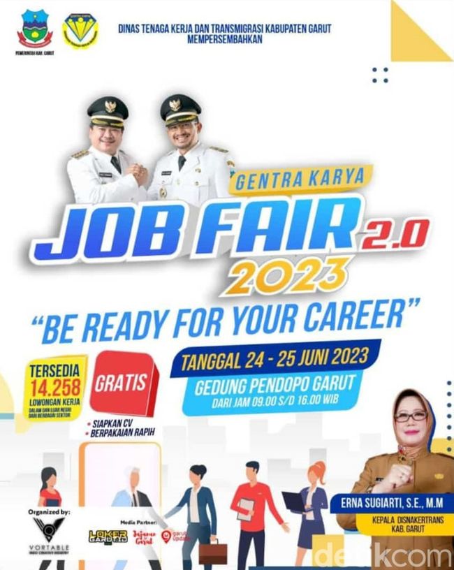 Job fair bertajuk Gentra Karya Job Fair 2.0 2023 ini, diselenggarakan oleh Dinas Tenaga Kerja dan Transmigrasi (Disnakertrans) Garut. Acaranya akan digelar selama dua hari di Pendopo Garut mulai hari ini, Sabtu hingga Minggu, 24-25 Juni 2023.