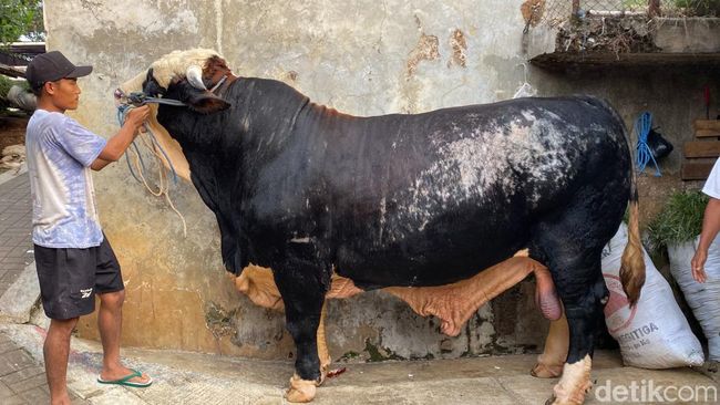 "Berkah ini jenisnya Simmental, sudah enam bulan kita rawat. Perawatannya dikasih pakan campuran ampas, dedek, singkong juga. Usianya 3 tahunan, bobotnya 1,25 ton," kata Iwan saat ditemui detikJabar di Lembursitu, Kota Sukabumi, Sabtu (24/6/2023).