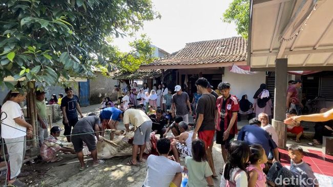 "Alhamdulillah pada hari ini warga mendapat sumbangan satu sapi. Sebelumnya, selama saya ngumbara (merantau) dari tahun 1980 hingga 2023 ini, baru pertama kali di kampung ini ada potongan (kurban) sapi. Bantuan kurban dari pemerintah pun kita nggak pernah merasakan," kata Endang kepada detikJabar di lokasi, Jumat (30/6/2023).