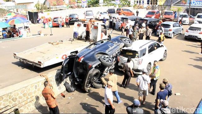 Insiden itu terjadi di Jalan Mayor Mahmud, Kecamatan Cikole, Kota Sukabumi pada Minggu (2/7) kemarin. Mobil minibus dengan plat nomor uji coba F 1241 XX mengalami rusak parah gara-gara salah masuk ke area parkir tempat wisata tersebut.