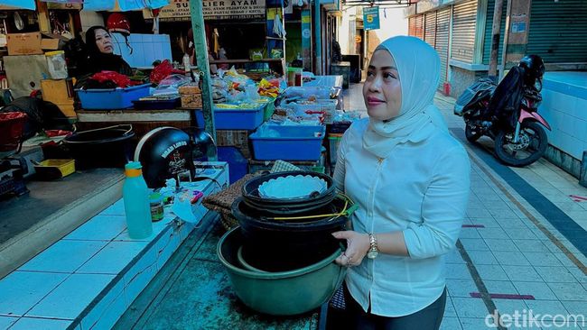 Seperti Yeni (48) yang sudah menata lapak jualannya dan sore ini bakal ikut mengepel lantai pasar. "Hari ini dari Babinsa dan Polisi tadi sempat datang untuk persiapan. Jadi tadi dibersihkan, dirapikan pasarnya. Nanti sore kita gotong royong ngepel lantai pasar. Terus ada pemberitahuan khusus besok semua pedagang diminta pakai kebaya, batik, supaya indah menyambut Bapak Presiden," kata Yeni.