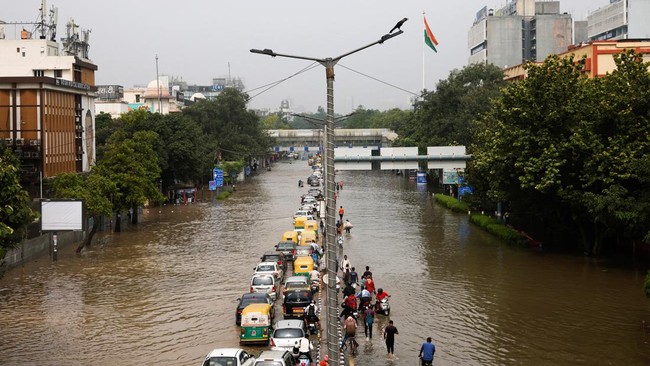Jalanan di New Delhi, India, diterjang banjir bandang akibat cuaca ekstrem yang terjadi selama beberapa hari terakhir. Hingga Jumat (14/7/2023), dilaporkan 88 orang tewas karena bencana ini.
