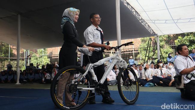 Seperti yang didapat seorang siswa yang membawa pulang satu unit sepeda setelah menjawab pertanyaan Ridwan Kamil. Awalnya, Kang Emil -sapaannya- melempar pertanyaan siapa yang telah membantu orang lain sebelum berangkat ke SMKN 12 Bandung.