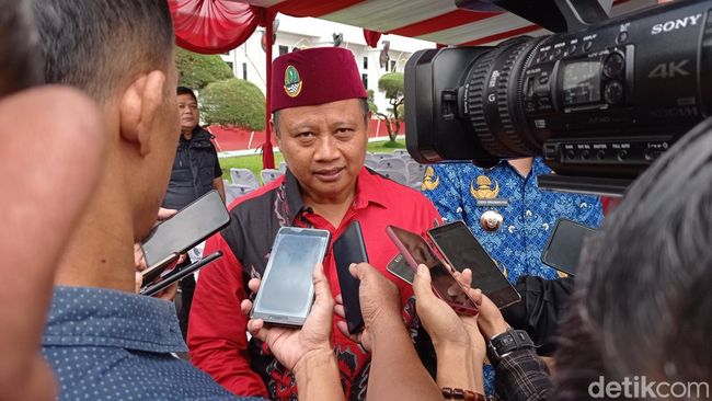 Uu terlihat mengenakan peci berwarna merah berlogo Pemprov Jawa Barat dipadukan dengan baju batik yang juga berkelir merah.