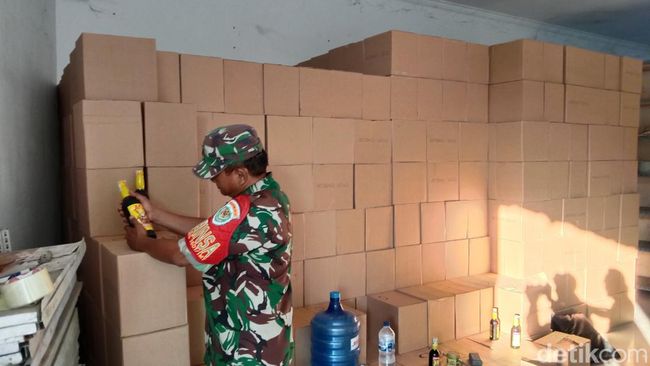 Di dalam gudang, terdapat ratusan dus berisi minuman keras berbagai merek. Petugas pun langsung melakukan pemeriksaan hingga mengevakuasi sementara dengan menggunakan sejumlah truk.