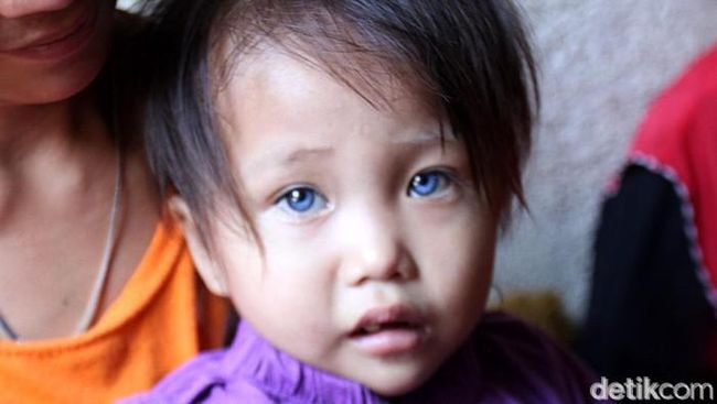 Aneh tapi nyata, bola mata bocah bernama Amelia Anggraeni seperti menggunakan lensa kontak, matanya indah dengan perpaduan tiga warna. Bola mata tak biasa itu rupanya merupakan bawaan dari lahir.