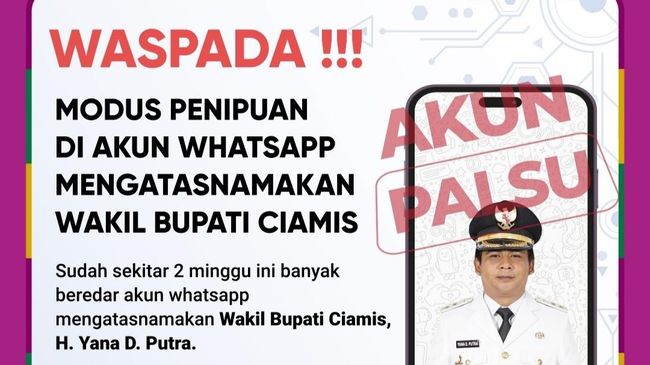 "Intinya jangan mudah percaya bila ada pesan mengatasnamakan kepala daerah Ciamis, seperti Bupati, wakil Bupati atau Sekda Ciamis yang menjanjikan bantuan," pungkasnya.