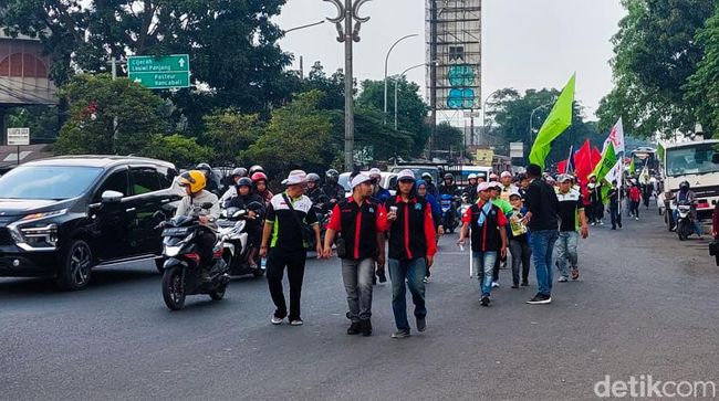 "Hari ini kami mulai longmarch ke Jakarta, dengan tujuan akhir di istana presiden. Menuntut dicabutnya UU omnibus law," ujar Asep saat ditemui.