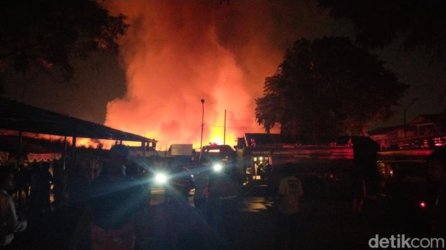 Pantauan detikJabar pukul 18.50 wib, kebakaran terjadi di area dalam pasar. Terlihat kobaran api dan asap membumbung tinggi dari lokasi kejadian.