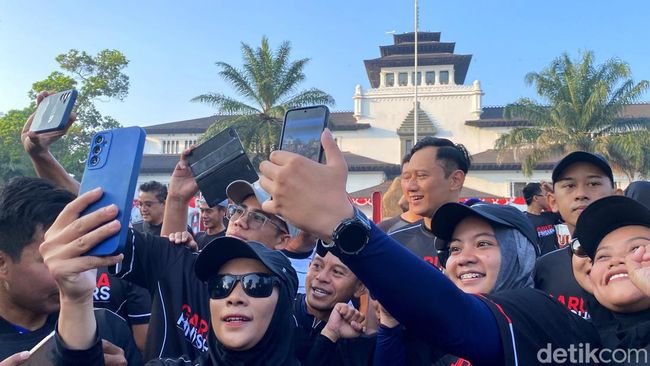 Ketua Umum Partai Demokrat Agus Harimurti Yudhoyono (AHY) lari pagi di Kota Bandung. Dia mengaku ingin menikmati indahnya Kota Kembang sambil bertemu dengan warga.