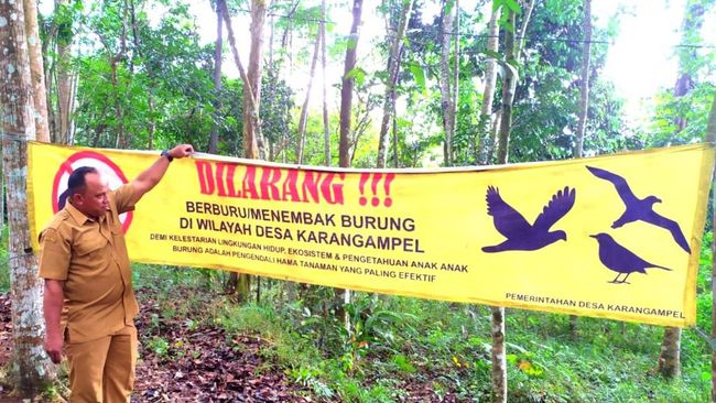 Kepala Desa Karangampel Asep Yudi Ruhyana menegaskan larangan itu bertujuan untuk menjaga populasi burung yang ada di wilayahnya. Populasi burung pengendali hama di wilayah tersebut kini langka.