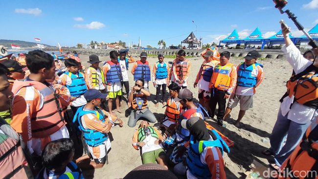 Berisiko terjadi kecelakaan di laut, sekelompok nelayan se-Jabar di Pantai Pangandaran dilatih taktis saat melaut. Selain pandai dalam menjaring ikan, nelayan dituntut paham mitigasi bencana dan penanganan ketika terjadi trouble perahu.