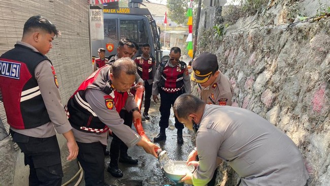 "Jadi kami dapat informasi di sini ada yang kesulitan air. Oleh karena itu kami koordinasi dengan dinas setempat, kita salurkan truk air bersih untuk keperluan warga di sni," kata Kapolres Cimahi AKBP Aldi Subartono.
