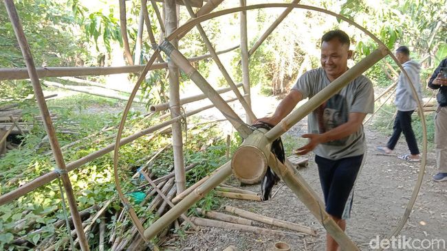 "Saya sudah 7 tahun bikin panjat pinang setiap momen tujuh belasan," kata pekerja bambu, Takmad ditemui detikJabar, Rabu (16/8/2023).
