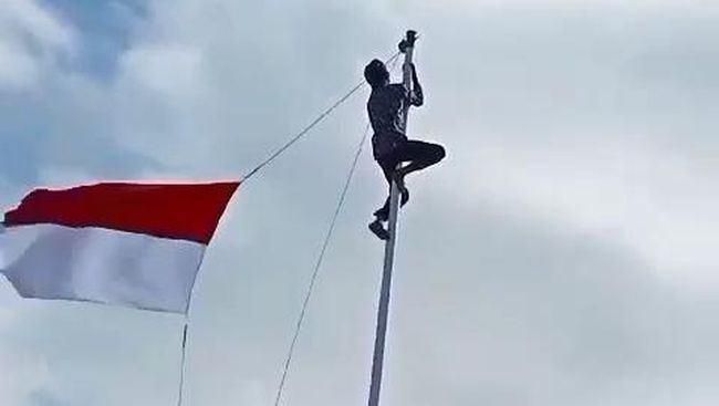 Aksi heroik pria tersebut yang nekat memanjat tiang demi Sang Merah Putih berkibar dengan sempur itupun viral di media sosial.