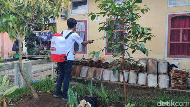 "Hari ini melaksanakan desinfektan total, kandang, tempat makan minum dan lingkungan disemprot dengan cairan desinfektan. Tetangga juga," katanya.