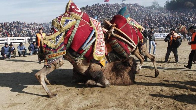 Mengadu hewan menjadi tradisi di berbagai daerah. Tak hanya di Indonesia, di luar negeri juga ada tradisi adu hewan. Contohnya di Turki yang punya tradisi adu unta.