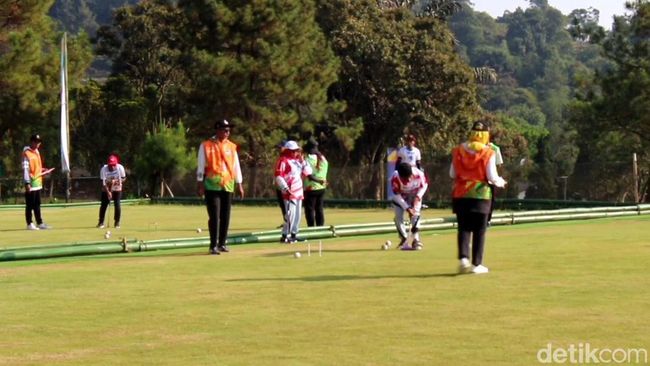 Ratusan atlet gateball yang berasal dari 18 provinsi di Indonesia dan beberapa atlet dari India menunjukkan aksinya di objek wisata Sariater, Kecamatan Ciater, Kabupaten Subang, Rabu (23/8/2023).
