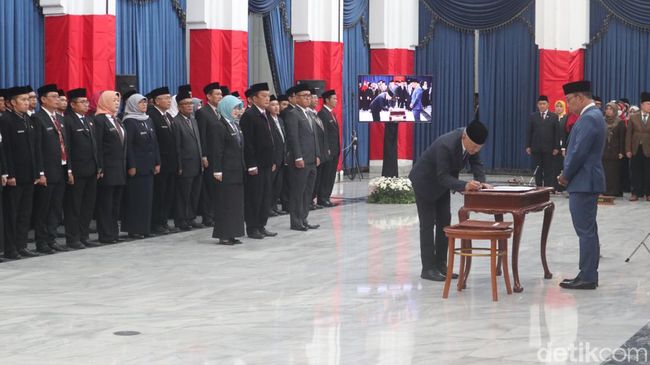 Pelantikan digelar di Aula Barat Gedung Sate pada Jumat (25/8/2023). Setiawan Wangsaatmaja dicopot dengan hormat sebagai Sekda Jabar jelang memasuki masa pensiun pada 1 September 2023 nanti. Selanjutnya, Setiawan bakal menempati Jabatan Fungsional Asesor Utama di lingkungan Pemprov Jabar.