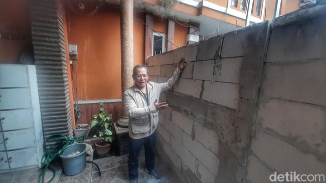 Pantauan detikJabar, di depan sebuah kosan tersebut berdiri benteng atau tembok dengan ketinggian dua meter dan panjangnya sekitar tiga meter. Benteng tersebut dtembok oleh tetangganya dengan inisial N (70).