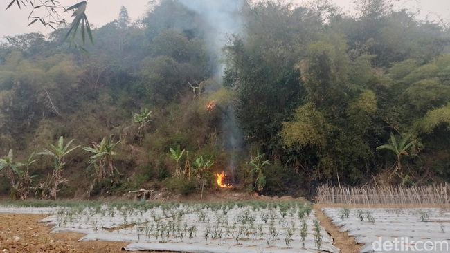 Pantauan detikJabar di lokasi, api masih menyala membakar alang-alang dan tanaman kering di bagian atas dan dasar hutan. Area yang terbakar berdekatan langsung dengan kebun milik warga. Lokasi kebakaran tepatnya di Desa Buniwangi, Kecamatan Gegerbitung.