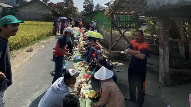 Dari empat potongan video yang diterima detikJabar, para warga bersuka cita melakukan kegiatan botram atau makan bersama-sama. Dengan beralaskan karpet dan daun pisang, warga tampak menikmati santapan nasi liwet khas Sunda. Mereka bahkan duduk di pinggir jalan sepanjang 200 meter.