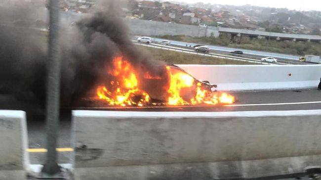 Kanit PJR Ditlantas Polda Jabar Tol Purbaleunyi, AKP Darno mengatakan mobil sedan mewah tersebut dikendarai warga Yogyakarta bernama Lie Ta Sang (59). Kemudian mengalami kebakaran pada pukul 17.10 WIB.