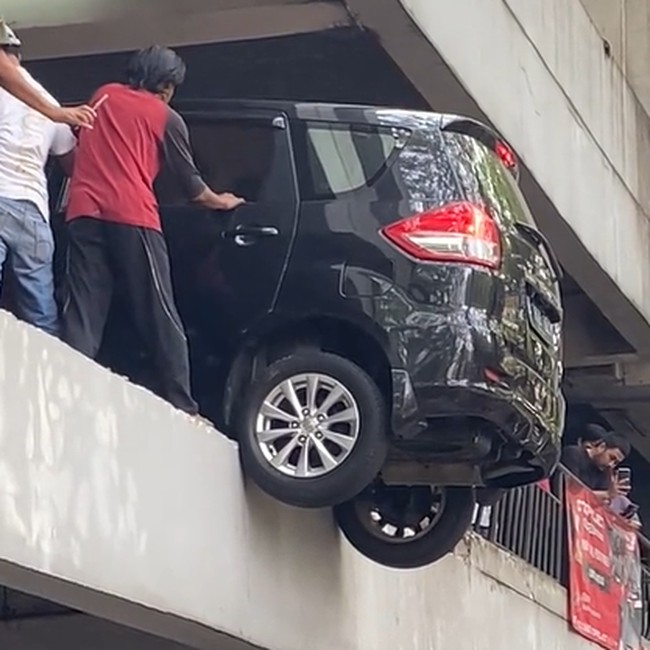 Ngeri! Mobil Hampir Jatuh di Area Parkir