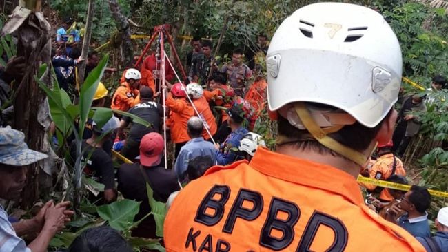 "Alhamdulillah kami berhasil melakukan evakuasi korban, kondisinya selamat. Mengalami luka patah tulang karena kedalaman sumur 20 meter," ujar Memet kepada detikJabar.
