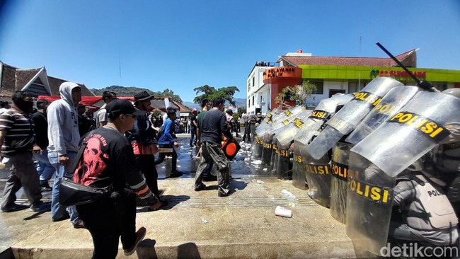 Ratusan personel polisi yang dikerahkan pun melakukan beberapa upaya pengamanan secara bertahap. Hal itu untuk menahan dan mengendalikan laju massa yang kian tak terkendali.