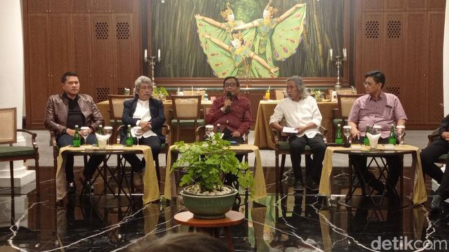 "Tadi kita dialog soal masalah bangsa, bagaimana membangun bangsa ini ke depan dengan pendekatan hati nurani. Budayawan dan seniman itu biasanya refleksinya lebih tajam. Karena kalau cuma di atas meja pakai teori buku ini, kadang kala teorinya gampang ditulis. Tapi kalau dari rasa ini kan tadi kita tahu, bahwa itu yang dirasakan budayawan dan seniman oleh bangsa ini seperti apa. Ya keluhan-keluhan tadi," papar Mahfud.