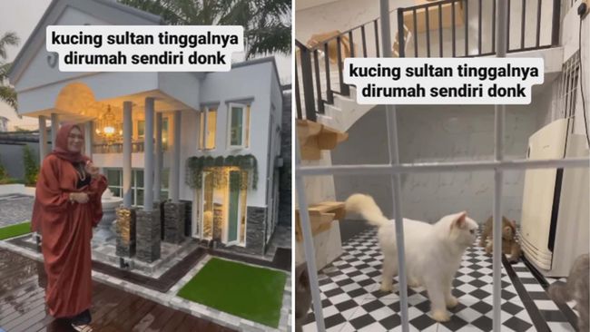 "Kucing sultan tinggalnya di rumah sendiri donk," tulis keterangan video. Video itu menjadi viral di media sosial.