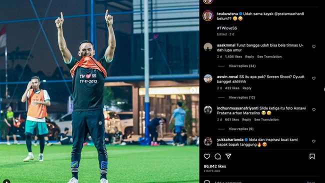Hingga saat ini unggahan tersebut telah disukai oleh 86.458 pengguna Instagram dan memperoleh beragam komentar. Kocaknya, beberapa malah terlihat memberikan komentar nyeleneh dengan menebak-nebak kepanjangan inisial di kaos Teuku Wisnu tersebut.