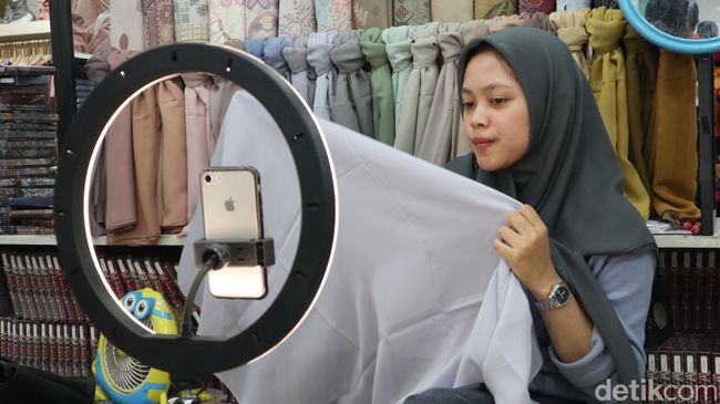 "Ramai, live shopping gini bantu penjualan sampai 1.000 pcs per hari. Itu dari Shopee sama TikTok," ucap Nur (30) manager kios Youth Scarf saat berbincang dengan detikJabar, Jumat (22/9/2023).