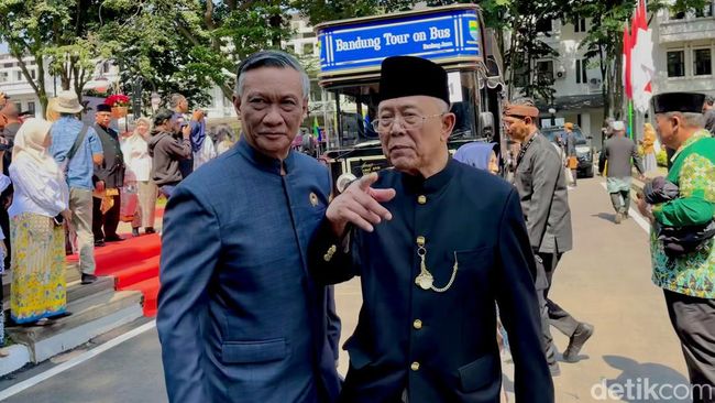 Upacara peringatan Hari Jadi Kota Bandung (HJKB) ke-213, dilakukan di Plaza Balai Kota Bandung pada Senin (25/9/2023) pagi. Di antara barisan Forum Koordinasi Pimpinan Daerah (Forkopimda) Kota Bandung, terlihat eks Wali Kota Bandung Dada Rosada.
