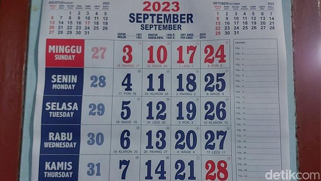 Terdapat sejumlah tanggal penting di bulan September 2023, baik peringatan nasional atau international. Hal ini, untuk memperingati momentum spesial di hari tersebut.