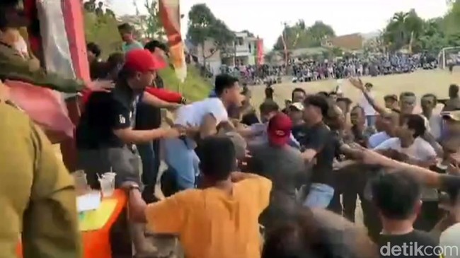 Video dengan durasi 30 detik saat kericuhan tersebar di aplikasi perpesanan. Diketahui, pertandingan bola antar kampung itu digelar di Lapang Cisarua, Desa Cisarua, Kecamatan Nagrak, Kabupaten Sukabumi pada Rabu (27/9/2023) kemarin.